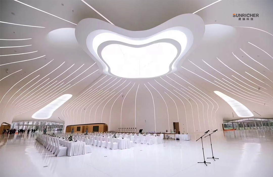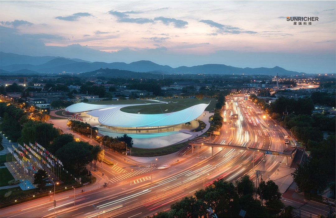 系2024年首次啟用,由知名建筑師馬巖松領銜的MAD建筑事務所精心打造,總建筑面積達6.4萬平方米,建筑高度12米,共三層,包括主會場和宴會廳在內的16個主要空間,整體可容納5600人。用獨特三葉草造型,融入海淀三山五園。晟瑞 SUNRICHER 攜手MAD,用智能照明點亮“中國的硅谷,世界的中關村”!