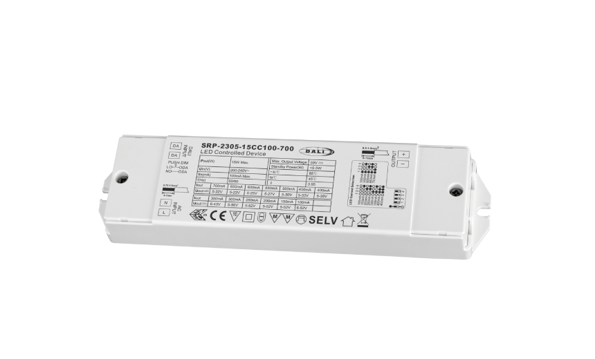 | DALI | 單通道 | 5-52V | 100mA-700mA撥碼選擇,每50mA一檔 | 200-240V | 15W | >0.95 | 178*46*22mm(長*寬*高) |